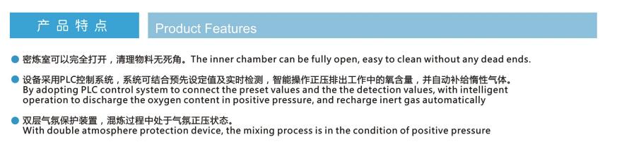 氣氛保護密煉機(鈦合金密煉機)應(yīng)用范圍:鈦合金/銅合金/鋁合金粉末及高比重粉末的混煉等等。